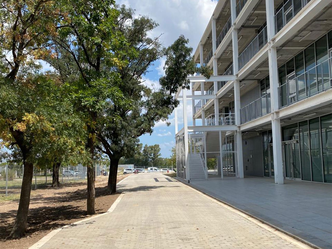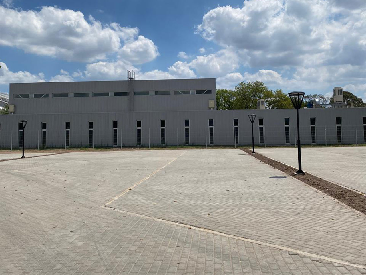 Se realizó: Movimiento de suelos, ejecución de paquetes estructurales de tosca y suelo cemento, ejecución de acceso de hormigón, colocación de intertrabado, canalización y cableado, instalación de luminarias, fabricación y colocación de portones, colocación de alambrado, ejecución de estacionamientos y calles internas, reparación de portón existente.