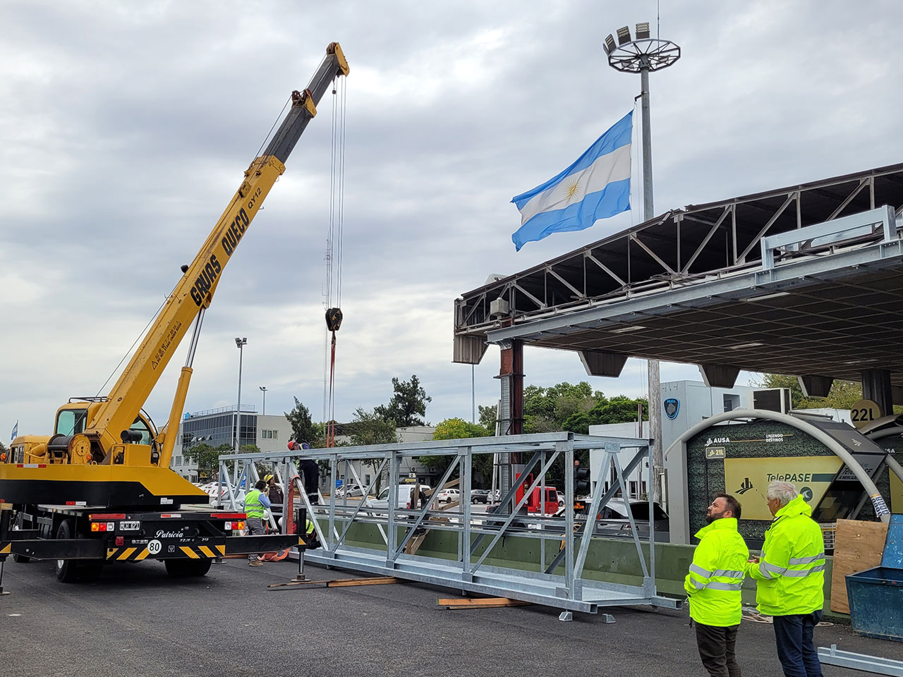 Para la colocación de los equipos que detectarán los autos, se realizó fabricación y montaje de pasarela metálica.